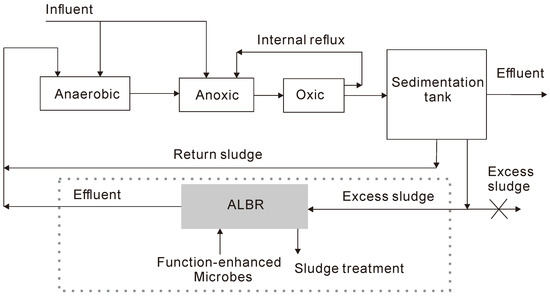 A pilot-scale ALBR system with a capacity of 6 m3/d was built and operated continuously for RES reduction. Combined ALBR and function-enhanced microbes were integrated into the system. Continuous operation showed that the sludge reduction efficiency was higher than 56.22%, and the water quality of the effluent was satisfactory. The outcomes of this research include the following findings: