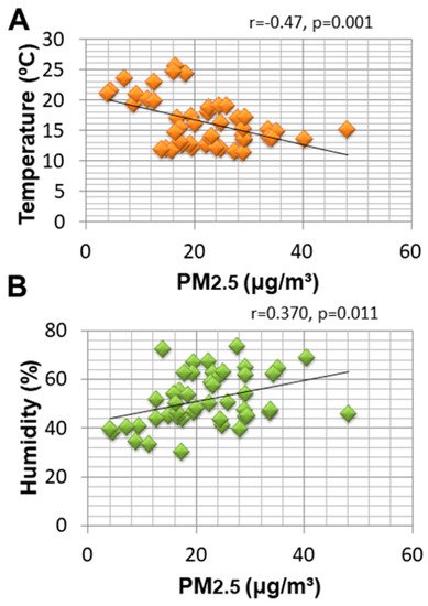 We found that PM2.5 concentrations exceeded the limit values over almost the entire study period (80%) in 2019. Our data accorded with earlier observations supporting that average daily PM2.5 concentrations exceeded established standard values in the city [1,38]. Previous reports supported a correlation between the number of days exceeding the daily threshold concentration and the annual hospital admission rates for respiratory diseases [1].