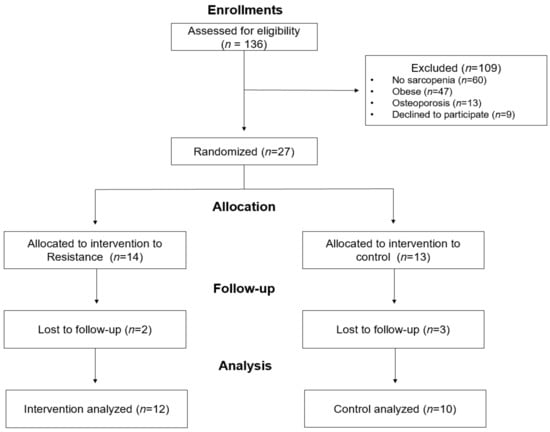 - Liao, C.D.; Tsauo, J.Y.; Huang, S.W.; Ku, J.W.; Hsiao, D.J.; Liou, T.H. Effects of elastic band exercise on lean mass and physical capacity in older women with sarcopenic obesity: A randomized controlled trial. Sci. Rep. 2018, 8, 2317. [Google Scholar] [CrossRef] [PubMed]