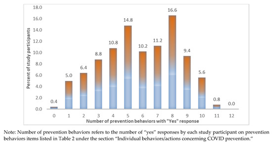 Percent of Study Participants by Number of Prevention Behaviors Concerning COVID-19 (with potential range from 0 to 12).