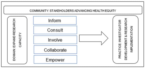 - Hall, M.; Engler, J.; Hemming, J.; Alema-Mensah, E.; Baez, A.; Lawson, K.; Quarshie, A.; Stiles, J.; Pemu, P.; Thompson, W.; et al. Using a Virtual Community (the Health Equity Learning Collaboratory) to Support Early-Stage Investigators Pursuing Grant Funding. Int. J. Environ. Res. Public Health 2018, 15, 2408. [Google Scholar] [CrossRef] [Green Version]