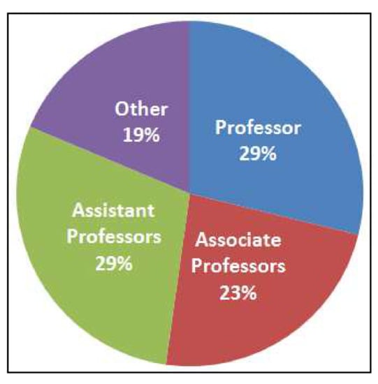 The centralized database includes existing active, and newly registered investigators. The newly registered investigators were on-boarded between January through 22 April 2021. Table 2 shows the number of active investigators. These results suggest significant engagement of RCMI Consortium investigators. Inter-institutional unique publications reveal 560 investigators made 2284 direct connections and research collaborations. Distribution of investigators by academic rank are shown in Figure 4. Table 3 shows publications per institution. Tracking and evaluating common metrics across the U54 RCMI Centers is essential in demonstrating the scientific and workforce development successes of the RCMI Program consistent with IE.