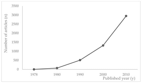 In this study, a total of 4854 articles related to infection nursing research from 155 journals were analyzed (with examples of top-ranking journals, including the Journal of the Association of Nurses in AIDS Care, Journal of Advanced Nursing, Heart and Lung, Journal of Clinical Nursing, and Nursing Clinics of North America). With respect to the number of articles according to the year of publication, the first results were two papers on the stigma experienced by trauma patients in 1978. Subsequently, only 511 articles were published in the 1990s. The number of published papers then more than doubled in the next decade, with 1320 papers published in the 2000s and 2948 papers published in the 2010s (Figure 1).