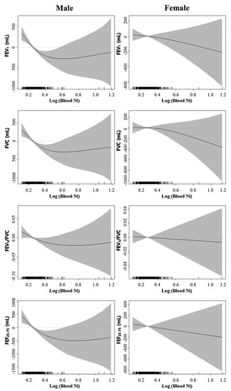 Chicago/Turabian StyleJoh, Joon-Sung, Mo-Yeol Kang, and Jun-Pyo Myong. 2021. "Dose–Response Relationship between Environmental Exposure to Nickel and Pulmonary Function in the Korean General Population Aged 40 or Older" International Journal of Environmental Research and Public Health 18, no. 13: 7016. https://doi.org/10.3390/ijerph18137016