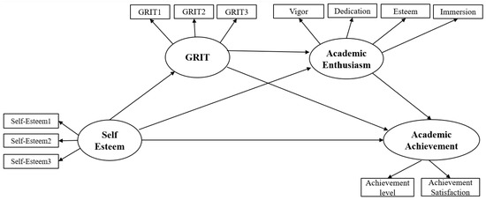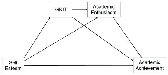 This study aimed to see whether there was a mediation effect of GRIT and academic enthusiasm in the relationship between self-esteem and academic achievement among middle school students. This research is shown in Figure 1.