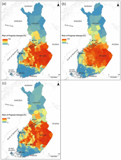 3.2.3. Pogosta Disease Risk Maps