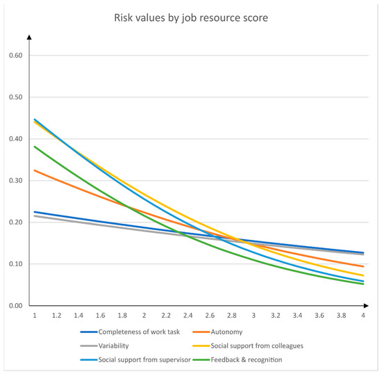 Prediction of psychological health impairment based on single job stressor and resources scores.