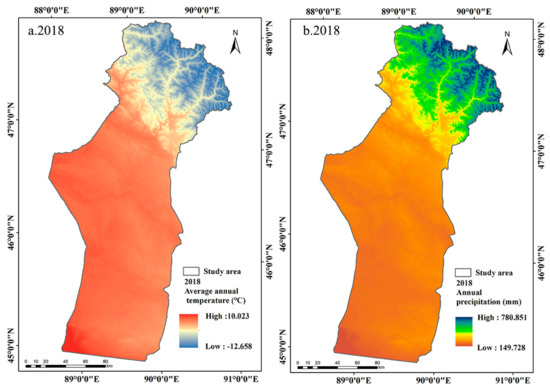 Temperature and humidity are critical factors affecting vegetation growth and driving ecological environment changes. The DN value of LST_DAY_1 KM band in the MOD11 A2 data product was converted to the commonly used unit of degrees Celsius, and the formula is expressed as: