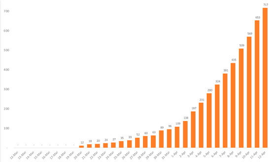 On April 12, the country had confirmed almost 25,000 cases of COVID-19 with a rapid increase since the end of March (Figure 5).