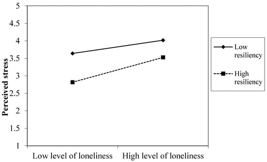 A significant interaction effect between loneliness and resilience on perceived stress.