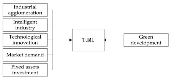 Recently, many scholars have studied the factors that affect TUMI. On the aspect of industrial agglomeration, Fang et al. [] found that it can promote rational allocation of industrial resources and reduce the cost and risk of manufacturing industry transformation and upgrading. On the aspect of the intelligent industry, Gereffi [] found that TUMI fundamentally needs to develop to a higher technology stage. It can promote the manufacturing industry to engage in high value-added production []. On the aspect of technological innovation, Yang [] found that it has a positive impact on the competitiveness of the manufacturing industry. Improving the technological innovation ability of the industry can break the technological barriers faced by the manufacturing industry []. On the aspect of market demand, Schumpeter emphasized the positive effect of market demand on innovation []. Romer et al. [] found that the dual factors of technology and market are of great significance to TUMI. On the aspect of fixed asset, Wang et al. [] found that fixed-asset investment leads to an imbalance of equipment demand in the manufacturing industry. This will affect the output structure of the industrial economy. William et al. [] found that fixed-asset investment formed the means of production and improved industrial productivity. On the aspect of green development, Gramkow et al. [] found that good green development measures can promote the development of TUMI. Zhou et al. [] found that the traditional manufacturing industry leads to increasingly serious industrial pollution, and the environmental carrying capacity is facing severe challenges. This will restrict the development of TUMI.