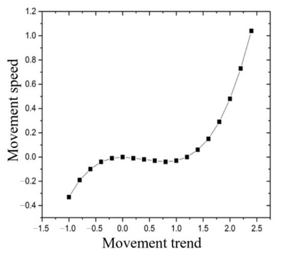 Second, according to the adiabatic approximation principle, in the case of , is ordered, and the fast variable is represented by the slow variable as . After substituting it into Formula (18), the function can be introduced to satisfy . Thus the potential function formula can be derived. Through the simulation of the potential function, the trajectory of ’s virtual particle is obtained, as shown in Figure 2. The order parameter breaks away from the original attraction point and forms a dissipative state in the system.