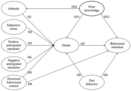 - Perugini, M.; Bagozzi, R.P. The role of desires and anticipated emotions in goal-directed behaviours: Broadening and deepening the theory of planned behavior. Brit. J. Soc. Psychol. 2001, 40, 79–98. [Google Scholar] [CrossRef]