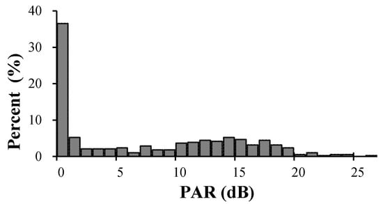 Statistical analyses were performed with SAS (Release 9.4, SAS Institute, Inc., Cary, NC, USA). A statistical significance level of p < 0.05 was adopted for all analyses. The correlation between PAR and LAeq,8h was examined with the Pearson correlation coefficient. A one-way analysis of variance (ANOVA) was conducted to evaluate the difference of mean PAR by LAeq,8h group. To analyze the distribution characteristic of HTs at each frequency for all participants, a general linear model (GLM) was conducted, followed by Tukey’s studentized range (HSD) test.