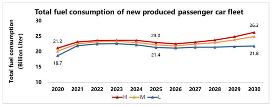 Figure 7. The total fuel consumption of newly produced passenger car fleet.