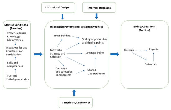 The interviews revealed that the collaborative governance arrangements and thinking occurred in relation to the following themes: path dependencies and power resource (a)symmetries (baseline/starting conditions), strategy/strategic planning, and trust and shared understanding (interaction patterns and systems dynamics). In addition, forms of complexity leadership and institutional design were found (