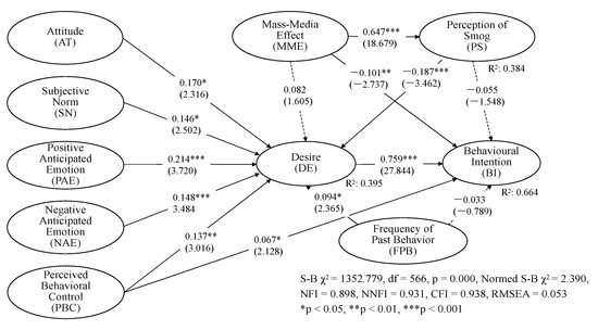 2.6.4. Relationship among Perception of Smog, Desire, and Behavioural Intention
