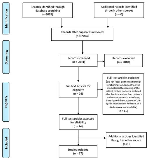 Chicago/Turabian StyleValente, Marco, Ilaria Chirico, Giovanni Ottoboni, and Rabih Chattat. 2021. "Relationship Dynamics among Couples Dealing with Breast Cancer: A Systematic Review" International Journal of Environmental Research and Public Health 18, no. 14: 7288. https://doi.org/10.3390/ijerph18147288