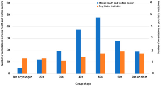 Regarding the differences by age group, the number of consultations was high among individuals in their 40s and 50s (Figure 4).
