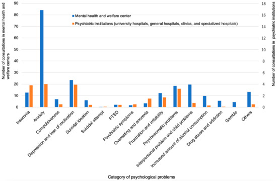 - Ministry of Health, Labour and Welfare. The Status of the Mental Health and Welfare Center Regarding Mental Health Counselling for SARS-CoV-2 in Japan. Available online: https://www.mhlw.go.jp/content/000699143.pdf (accessed on 30 June 2020).