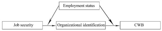 Drawing on the theory of self-categorization, individuals will classify themselves into a certain group based on their attributes and roles and distinguish themselves from other groups []. There are also subgroups that are based on different characteristics in the organization, which will affect employee’s identification to the organization []. In a hybrid employment context, there is a significant discrepancy between permanent and temporary employees in their situations and mindset []. It leads to big differences in their identification to the organization, and subsequent behavior. Therefore, we argue that employment status moderates relationships between job security and organizational identification, and between organizational identification and employees’ CWB for the following reason.