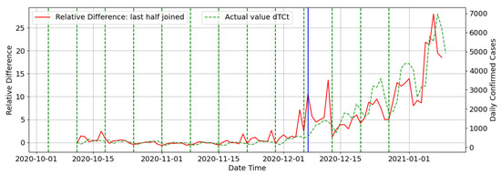 The relative difference is the chosen RIM for an alert of an additional COVID-19 case wave.