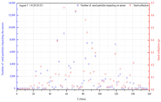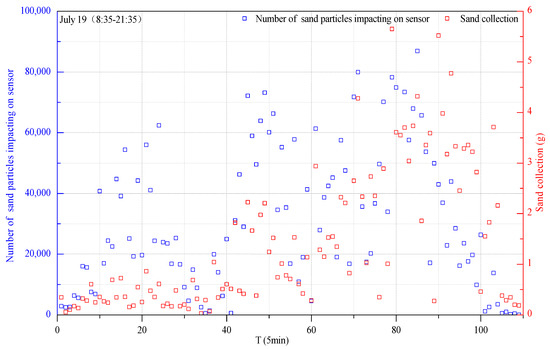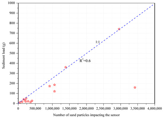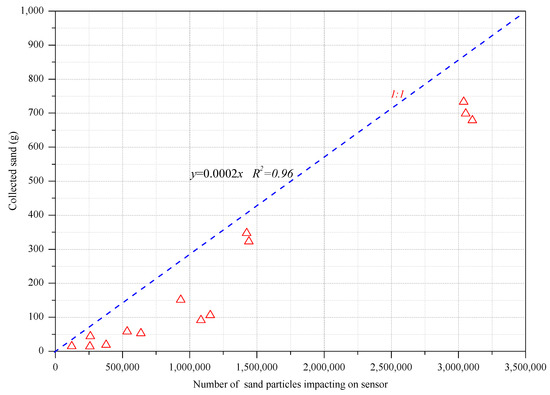 3.1. Analysis of the Correlation between the Number of Impacted Particles and the Amount of Sediment Collected