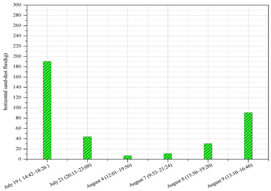 - Dong, Z.B.; Man, D.Q.; Luo, W.Y. Horizontal aeolian sediment flux in the Minqin area, a major source of Chinese dust storms. Geomorphology 2010, 116, 58–66. [Google Scholar] [CrossRef]