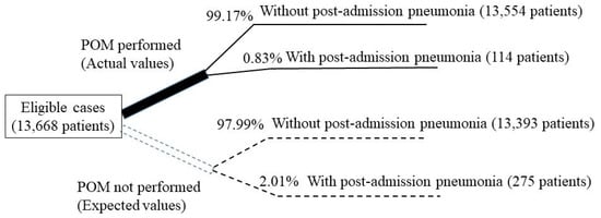In the present study, the incidence of postoperative pneumonia (effectiveness) and the treatment costs were compared before and after the introduction of POM in approximately 25,000 patients who received surgery for malignant tumors. The patients were selected from approximately 370,000 patients whose data were collected as part of a multi-institutional study on postoperative pneumonia [].