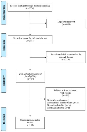 Rochmah, T.N.; Rahmawati, I.T.; Dahlui, M.; Budiarto, W.; Bilqis, N. Economic Burden of Stroke Disease: A Systematic Review. Int. J. Environ. Res. Public Health 2021, 18, 7552. https://doi.org/10.3390/ijerph18147552