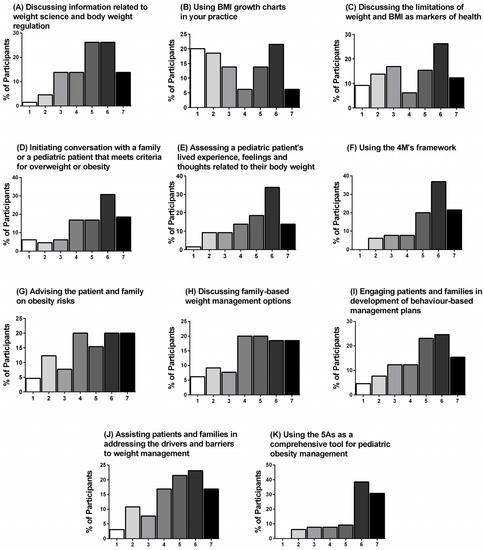 In summary, our evidence-informed toolkit of videos based on the 5As framework fills a considerable educational gap, led to changes in self-reported behaviors among HCPs, and sustained improvements in their self-efficacy in addressing weight-related topics with children and their families. Obesity is a complex disease and management should emphasize health over weight loss, begin early in life, and be family-centric. In order to promote healthy lifestyle behaviors and prevent eating disorders and other weight-related comorbidities, there is a critical need for tools to help HCPs engage in discussion around these topics in a sensitive, positive, and effective manner. Developing useful and effective resources for HCPs is a necessary component of medical education that has the potential to enhance client–provider interaction and clinical outcomes. In the future, this toolkit may be further evaluated with other HCPs (e.g., secondary and tertiary care physicians, physiotherapists, occupational therapists, psychologists, and social workers) to determine the impact of this resource across medical disciplines.