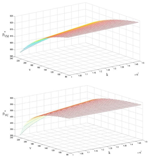 4.3. The Influences of ν and k on the Retail Price per Unit