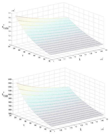 From Equation (A3), we obtain , so Equation (2) with respect to is a concave function. Setting Equation (A2) equal to zero results in . Substituting into results in , and substitutin into Equation (A1) results in:
