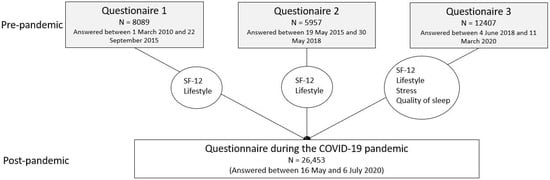 Didriksen, M.; Werge, T.; Nissen, J.; Schwinn, M.; Sørensen, E.; Nielsen, K.R.; Bruun, M.T.; Banasik, K.; Hansen, T.F.; Erikstrup, C.; et al. Impact of COVID-19 Pandemic on Sleep Quality, Stress Level and Health-Related Quality of Life—A Large Prospective Cohort Study on Adult Danes. Int. J. Environ. Res. Public Health 2021, 18, 7610. https://doi.org/10.3390/ijerph18147610