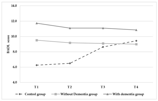This is supported through the fact that BADL performance among the intervention groups remained stable whereas it reduced in the control group. It has been shown that the ability to perform BADL is the most important factor when assessing the quality of life of those with dementia [58]. An individual’s quality of life is closely linked with their motivation to engage with physical activity [25,58] and thereby their ability to remain mobile and continue performing BADL autonomously [59,60]. Through enabling physical activity in care homes, this cycle can be maintained, leading to positive mental and physical benefits for residents.