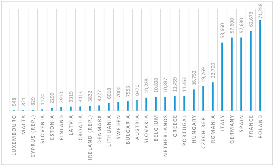 Number of inmates in the European Union countries (June 2021). Source: Authors’ own study based on data retrieved from: https://www.prisonstudies.org/map/europe (accessed on 23 June 2021) [43].