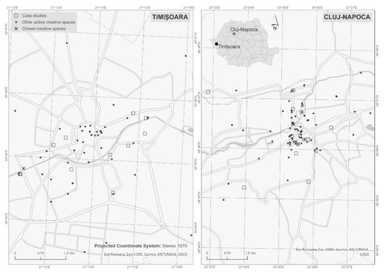 - The qualitative research was focused on 25 independent cultural–creative spaces in Timișoara and Cluj-Napoca, and the results reflect the actions, perceptions, and plans of the businesspeople and administrators interviewed. Some findings could be extrapolated on the basis of a more general knowledge, derived from our previous research, of the amplitude and condition of this sector in the two cities and in Romania more generally.