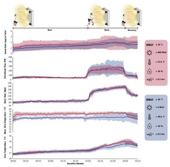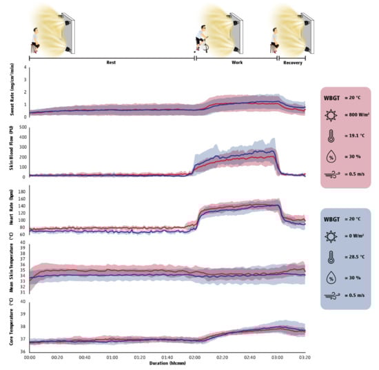 - Study 2: The effects of solar radiation on physiological responses and cognitive function at rest and during physical work. The aim of this study was to perform a controlled, laboratory-based evaluation of the effects of solar radiation on human physiological responses and cognitive performance at rest, during physical work, and post-work recovery by comparing indoor (i.e., without solar radiation) and outdoor (i.e., typical mid-day solar radiation) environments characterized by the same thermal stress.