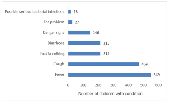 The mean age of the children was 24 months (SD 16.0). Fever was present in 549 (71%), cough in 469 (60%), while 146 (19%) children had danger signs. The clinical presentation of the children is shown in Figure 3 while their demographic characteristics, as well as those of their caretakers are in Table 3.