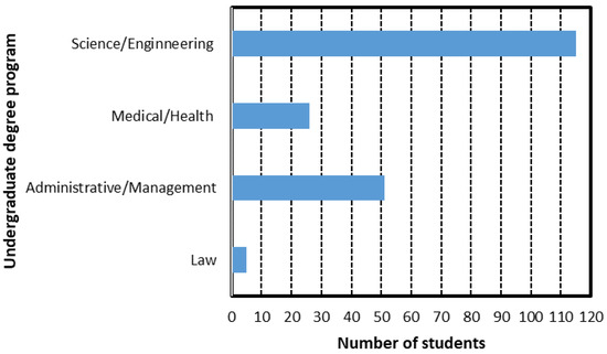 Distribution of the student sample by degree program: Science and Engineering, Medical/Health, Administrative/Management, and Law studies.