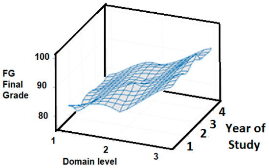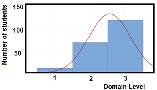 Data Analysis: The data collected with the CONAPRA certification exam (from a sample of N = 197 students) and project presentation results were analyzed using descriptive statistics to classify participants in domain levels. The average grade between the CONAPRA certification exam and the project presentation was obtained to determine the corresponding competence’s domain level. Using the examination grade (CE) and the project-proposal grade (PG), a final grade (FG) was calculated for each student. Using FG as an indicator, three certified domain levels were defined: