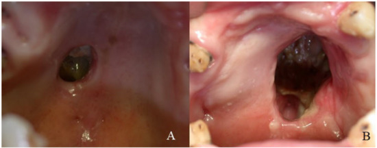 - Barrientos, J.; Corchero, G.; Soler, F. Surgical treatment of cocaine-induced palatal perforations: Report of three cases and literature review. J. Clin. Exp. Dent. 2021, 13, e201–e206. [Google Scholar] [CrossRef] [PubMed]