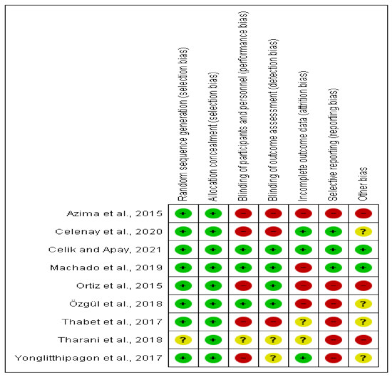 Additionally, the Cochrane risk of bias tool [31,32] was used to assess this aspect of the included articles (Figure 2).