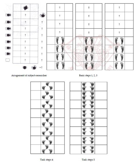 As for the rationale for the duration and method of the program, the result showed that the index improved when an 8 or 10-week training program was applied to the elderly in the previous studies [2,20,32]. The program was conducted as a group training, with the researcher performing a demonstration in front of the participants, who then followed. The composition of the program is shown in Table 1, and the basic and task steps of the humanet exercise presented in Figure 2. The task steps of humanet exercise were more difficult, complex, and higher levels than basic steps.