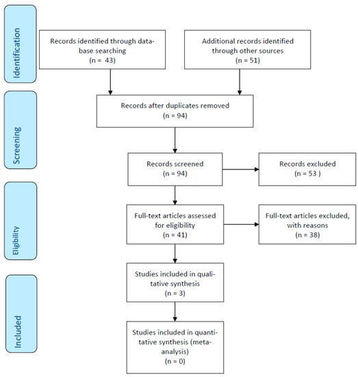 - Moher, D.; Liberati, A.; Tetzlaff, J.; Altman, D.G. The PRISMA Group Preferred Reporting Items for Systematic Reviews and Meta-Analyses: The PRISMA Statement. PLoS Med. 2009, 6, e1000097. [Google Scholar] [CrossRef]