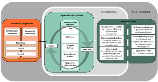 - Bessems, K.M.; van Assema, P.; Martens, M.K.; Paulussen, T.G.; Raaijmakers, L.G.; de Vries, N.K. Appreciation and implementation of the Krachtvoer healthy diet promotion programme for 12- to 14- year-old students of prevocational schools. BMC Public Health 2011, 11, 909. [Google Scholar] [CrossRef]