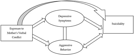 The present study tests the potential pathways from exposure to verbal conflict between mother and her intimate partner to suicidality among a sample of urban adolescents in Chicago’s Southside. Guided by the General Strain Theory, we hypothesize that (a) exposure to verbal conflict between mother and her intimate partner will be directly associated with suicidality, (b) depressive symptoms will mediate the association between exposure to verbal conflict between mother and her intimate partner and suicidality, and (c) there will be a reciprocal association between depressive symptoms and aggressive behaviors and between aggressive behaviors and suicidality.