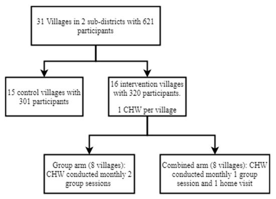 Before the inception of the intervention, the study team introduced CHWs to the community through a community engagement meeting explaining CHWs’ qualifications, types of training they had received, types of activities they would perform, and the households they would visit to deliver the interventions.