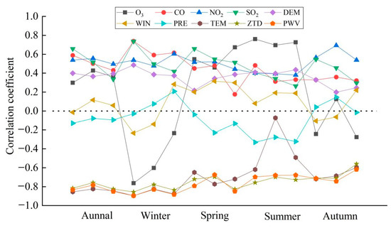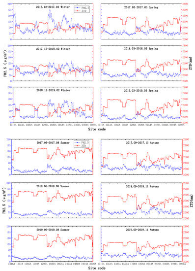 Figure 6. Seasonal average-scale ZTD and PM2.5 changes.