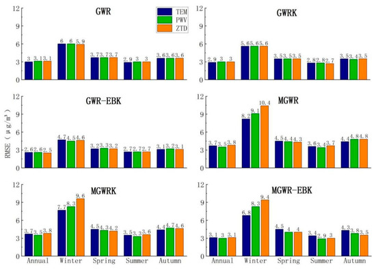 Figure 12. The RMSE values of the overall results obtained by the interpolation for the six models.
